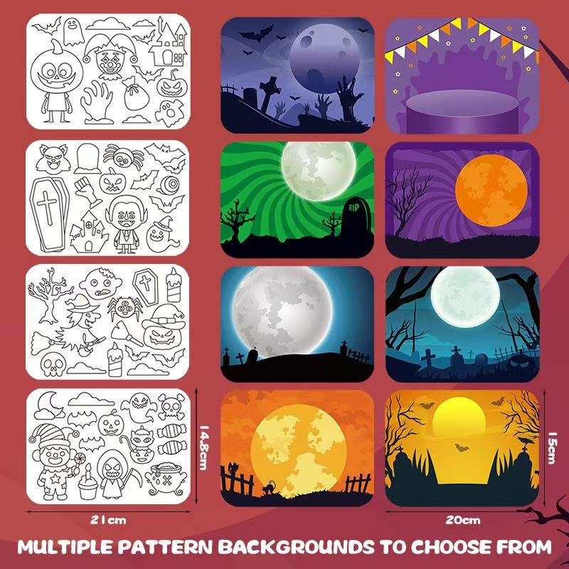 👻 Spooky & Sparkly Halloween Fun – A thrilling DIY activity set filled with vampires, ghosts, bats, pumpkins, skulls, and more – perfect for getting kids into the Halloween spirit!