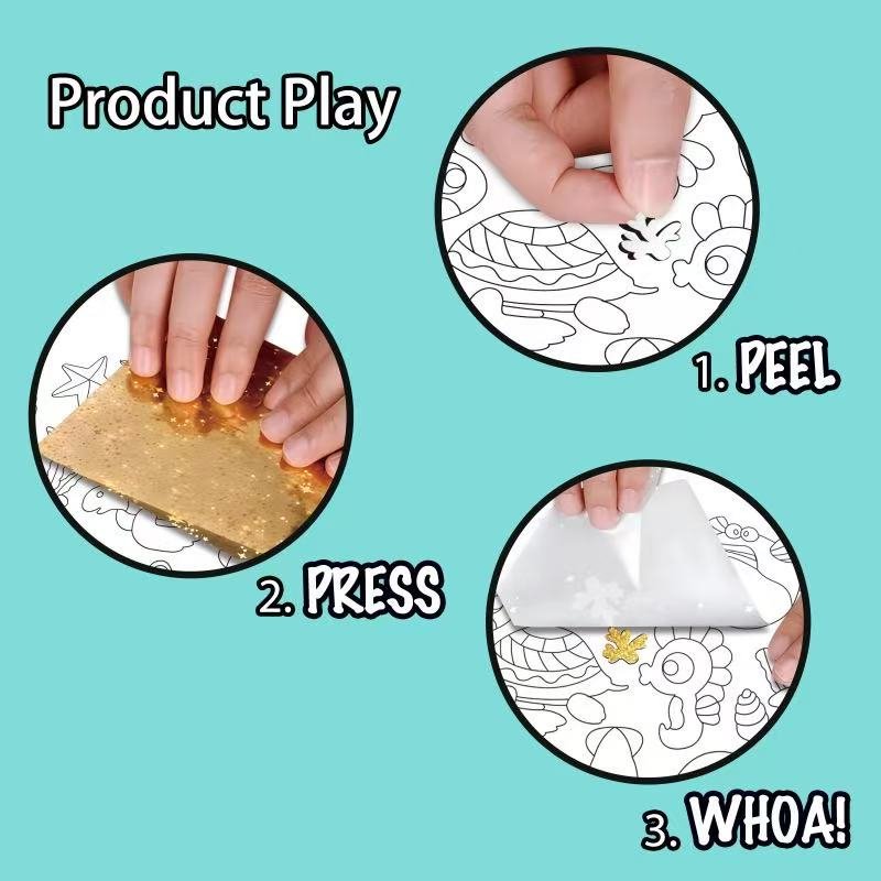 • Magic Foil Transfer Art – Just peel, stick, and rub to create shiny, colorful foil art without glue or mess. Easy and fun for little hands!